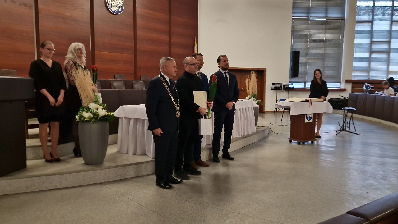 Vážení priatelia školy, dovoľte nám podeliť sa o úspech nášho pána učiteľa na hre na gitaru, ktorý získal cenu od mesta Martin za celoživotné pedagogické úspechy, udeľovanú primátorom mesta Martin, pánom prof. Jánom Dankom, k príležitosti Dňa učiteľov. Srdečne GRATULUJEME!