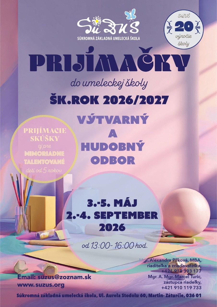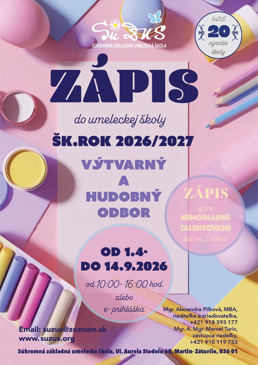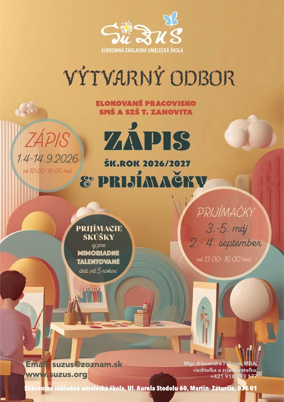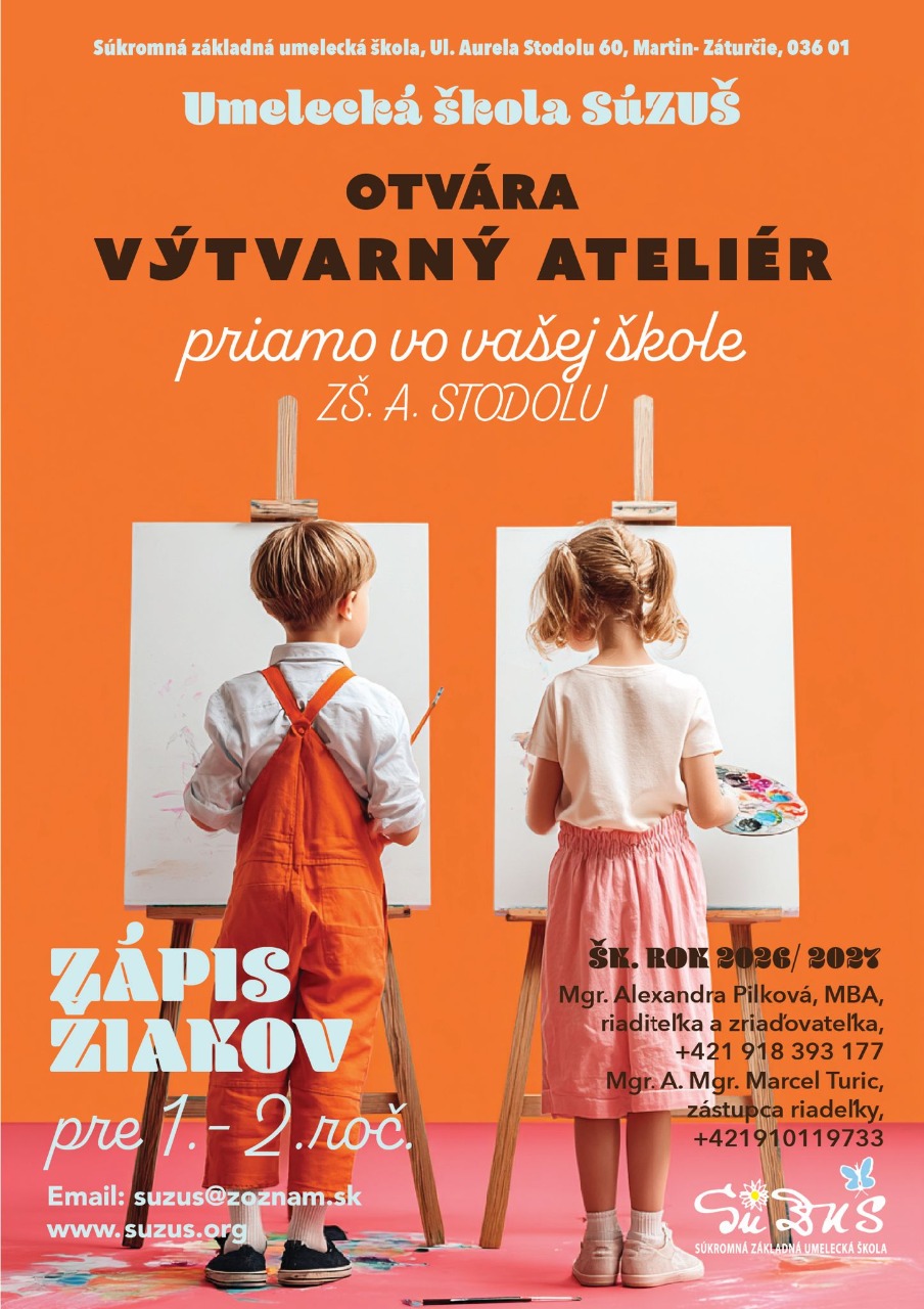 Vážení žiaci, rodičia a priatelia školy. Od začiatku budúceho školského roku 2026/2027, v spolupráci so ZŠ Aurela Stodolu Martin - Záturčie, otvárame výtvarný ateliér v Základnej škole Aurela Stodolu v Záturčí: